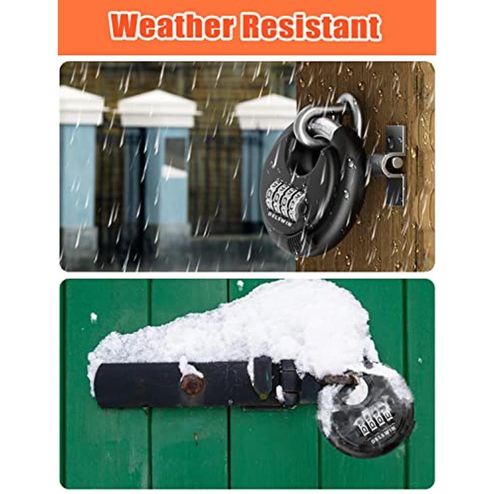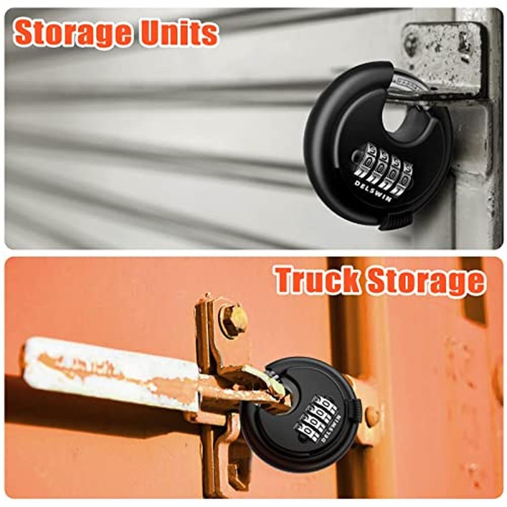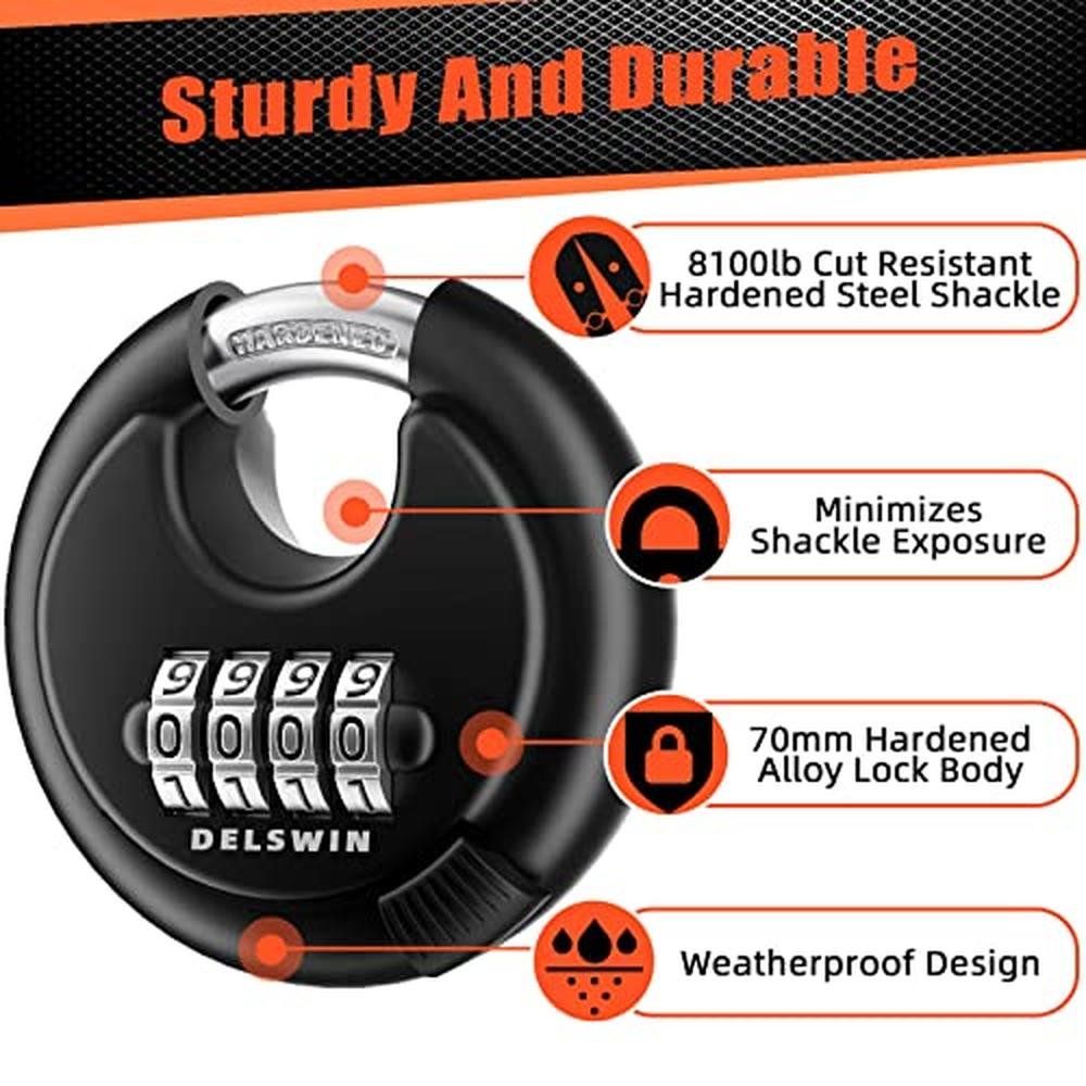 High-Security Combination Shackle Locks | Delswin Heavy-Duty Outdoor Padlocks | 4-Digit Disc Locks with Hardened Steel Shackle