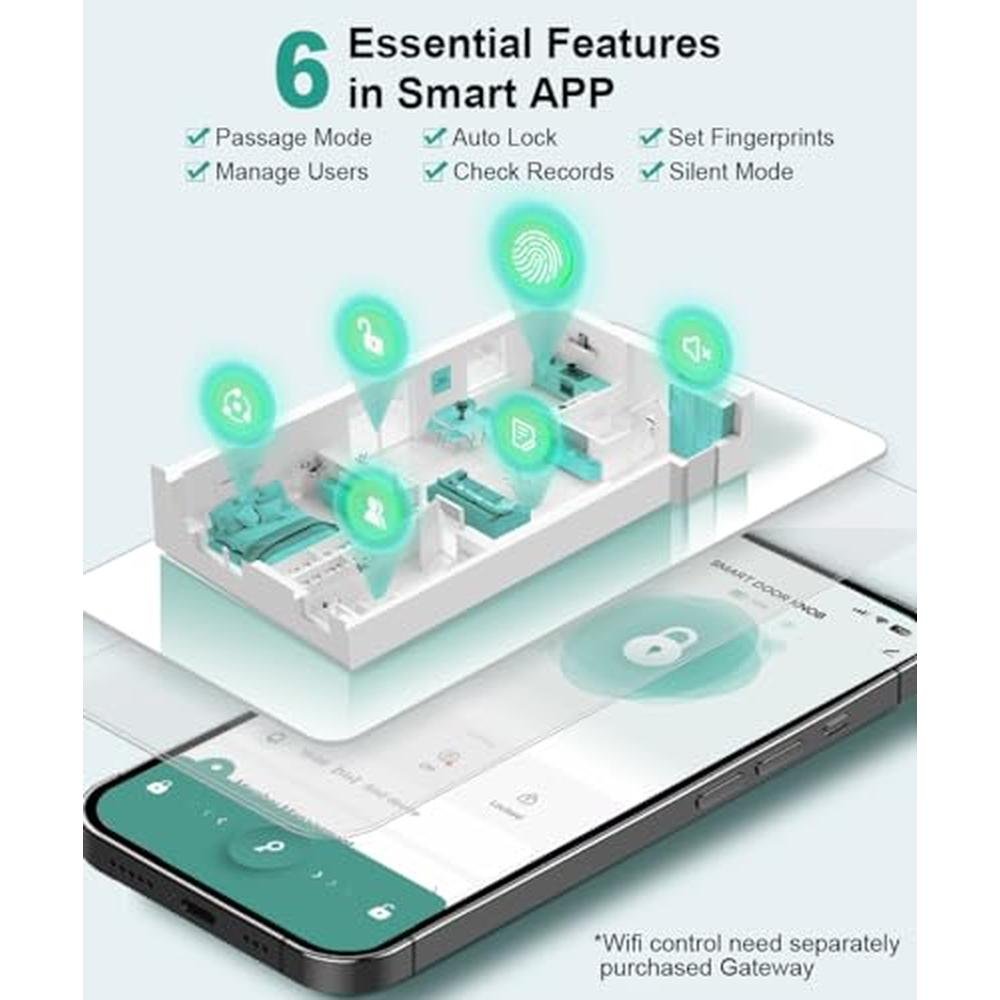 | Special Feature | Fingerprint, app, keys unlock, auto lock, Privacy/Normal/Passage Mode, Share or add Members, view history logs, Mute Mode |