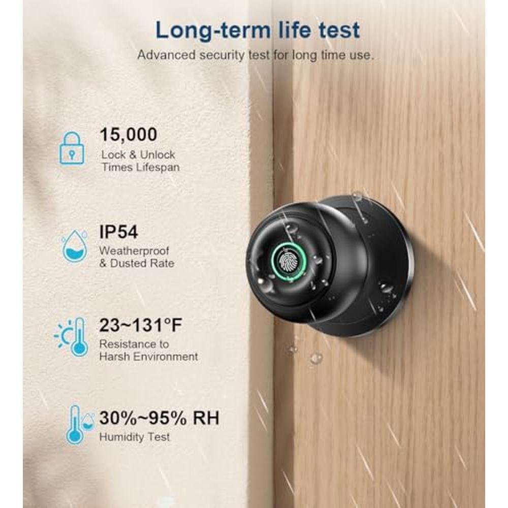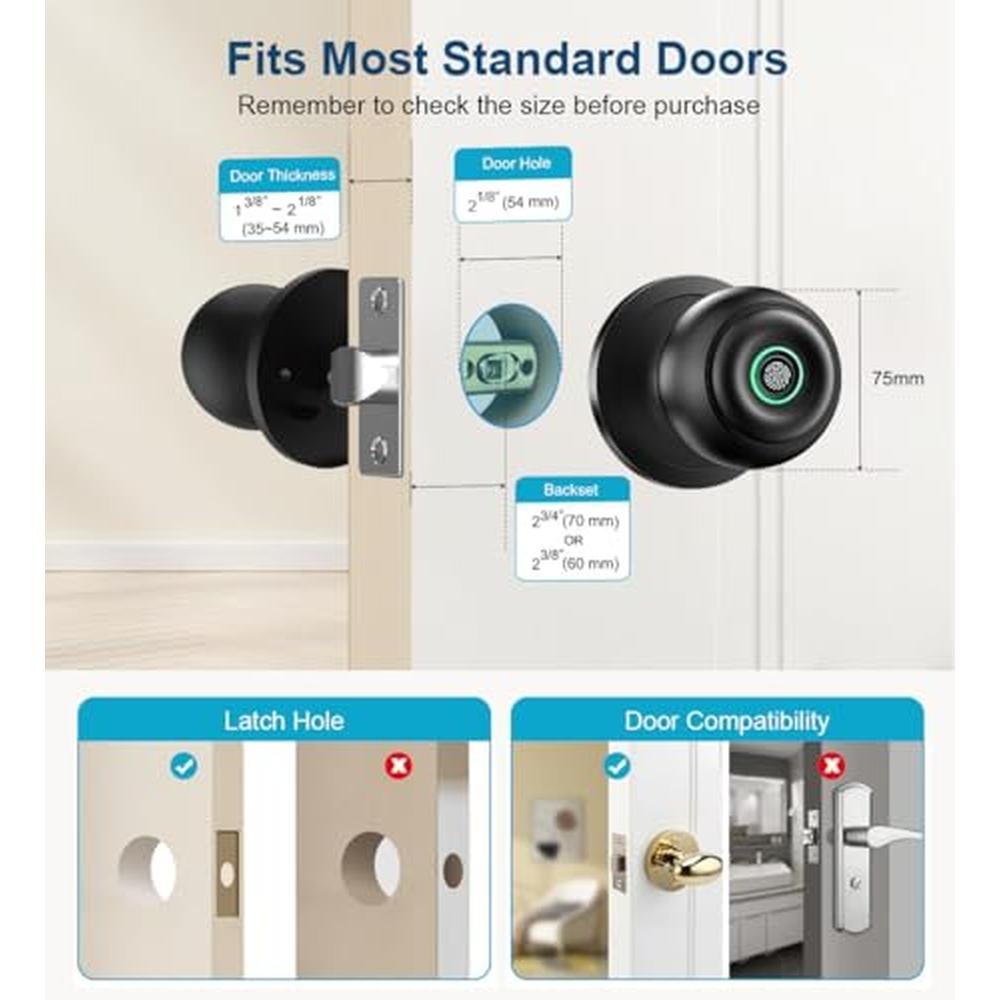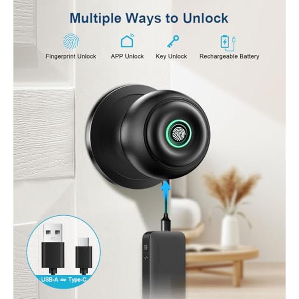 Experience unparalleled home security with our premium fingerprint door lock, designed for effortless keyless entry. This advanced biometric door knob features sophisticated app control, allowing you to manage access remotely, while also providing a convenient key backup option. Perfect for bedroom, front door, or office use, our matte black door lock is a stylish and secure solution for homes, apartments, and offices alike.