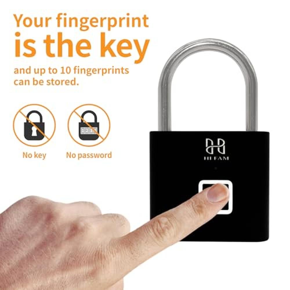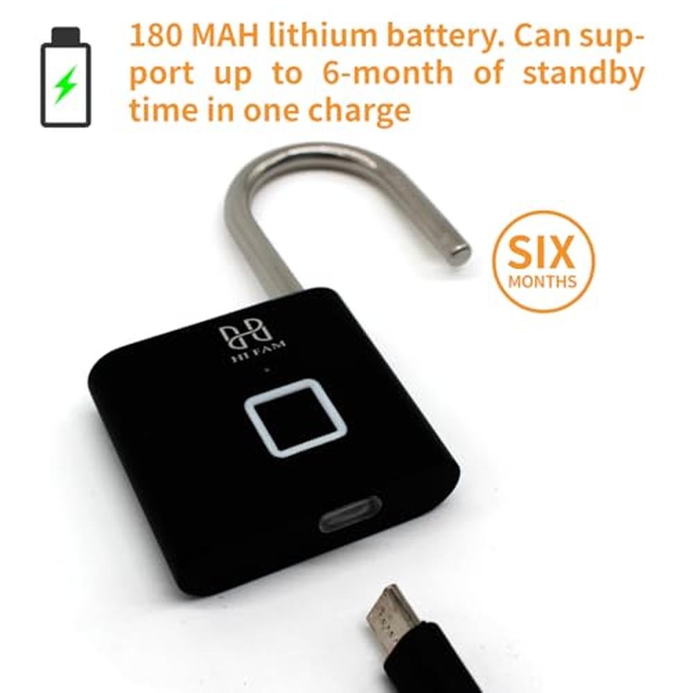 Premium Grade HIFAM Fingerprint Padlock | Keyless Biometric Gate Lock | USB Rechargeable Black