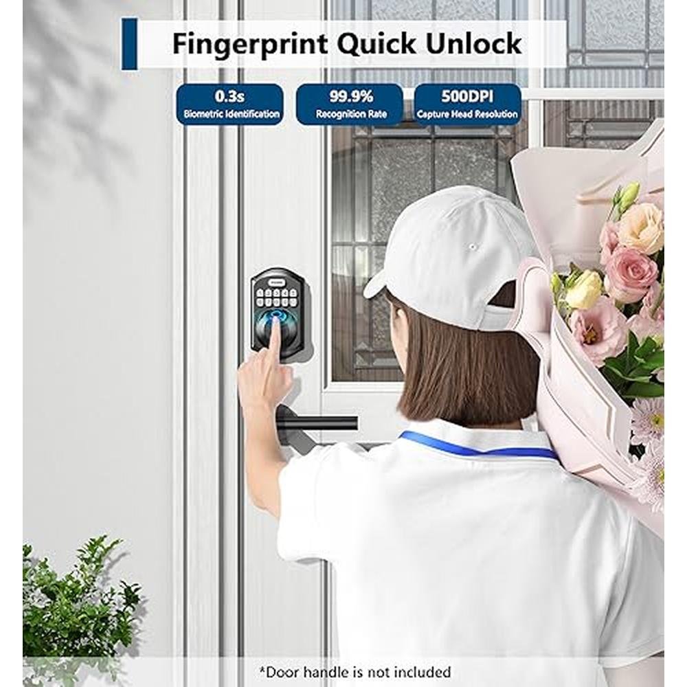 - Biometric fingerprint identification, recognizing your fingerprint in just 0.3 seconds and unlocking your door in 1 second