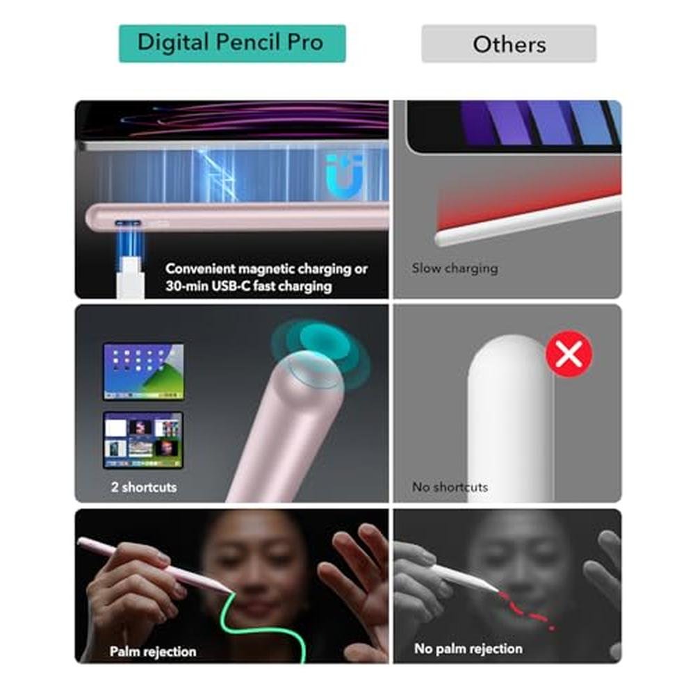 iPad Pencil | ESR Stylus Pen for iPad with Magnetic Wireless Charging | Premium Digital Pencil Pro with Tilt Sensitivity and Palm Rejection