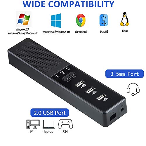 EMHFLYFN Speaker | Premium 3-Port USB Hub PC Speaker with Microphone | Plug-and-Play Connectivity