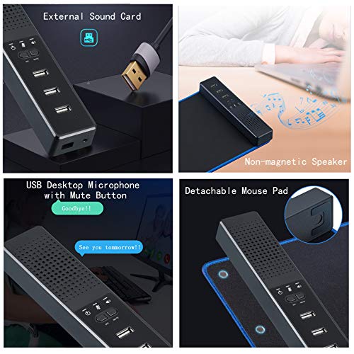 Experience enhanced audio and convenience with the EMHFLYFN USB Speaker, a high-end 3-port USB hub and PC speaker featuring a built-in microphone, one-key mute function, and seamless plug-and-play connectivity. Designed to deliver crystal-clear sound and effortless functionality, this innovative speaker is perfect for elevating your desktop setup. With its compact design and included mouse pad, the EMHFLYFN speaker is ideal for home offices, gaming stations, and multimedia entertainment. Indulge in immersive audio and boost productivity with this user-friendly speaker, offering easy installation and a reliable connection. Whether you're watching videos, playing games, or making video calls, the EMHFLYFN USB Speaker is the ultimate solution for high-quality sound and hassle-free connectivity.