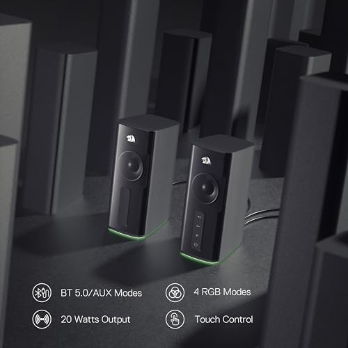Indulge in exceptional audio quality with the Redragon GS814 Stereo Desktop Speaker, a high-end sound system engineered to redefine your listening experience. Featuring a powerful 20W output and 4 real units, this premium speaker delivers enhanced bass and crystal-clear sound, ensuring an immersive experience. Seamlessly connect your devices via BT 5.0 or 3.5mm AUX, and control your music with ease using the intuitive touch-control interface. The dynamic RGB lighting adds a touch of sophistication and ambiance to your space, making it perfect for gaming, watching movies, or listening to music. With its advanced technology and sleek design, the Redragon GS814 is the ultimate companion for audio enthusiasts. Explore the features of the Redragon GS814 Stereo Desktop Speaker to discover why it's a top choice among premium audio systems. For more information, read reviews and experience the superior sound quality of the Redragon GS814.