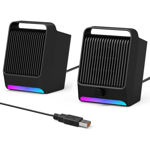 USB Computer Speakers for Desktop PC Laptop | Small Plug-N-Play External Speaker with Dynamic RGB Light, Stereo Loud Sound, Ultra-Deep Bass, Quick Control, Compatible with Windows/macOS/ChromeOS/Linux
