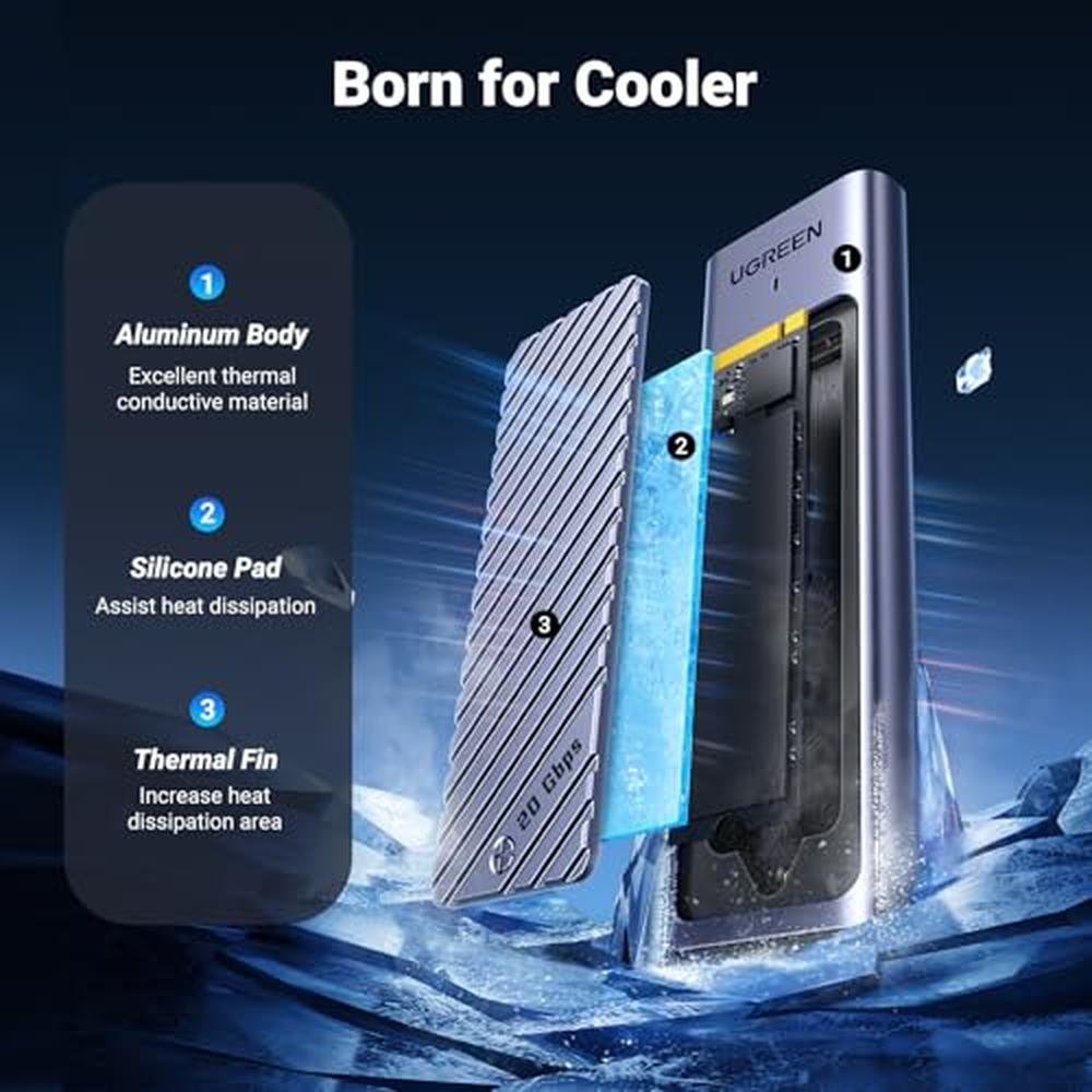 UGREEN 20Gbps M.2 NVMe SATA SSD Enclosure Compatible with 10Gbps USB C External M.2 Enclosure USB 3.2 Gen2 Support UASP Trim for M/B+M Key NVMe and SATA SSD in Size of 2230/2242/2260/2280