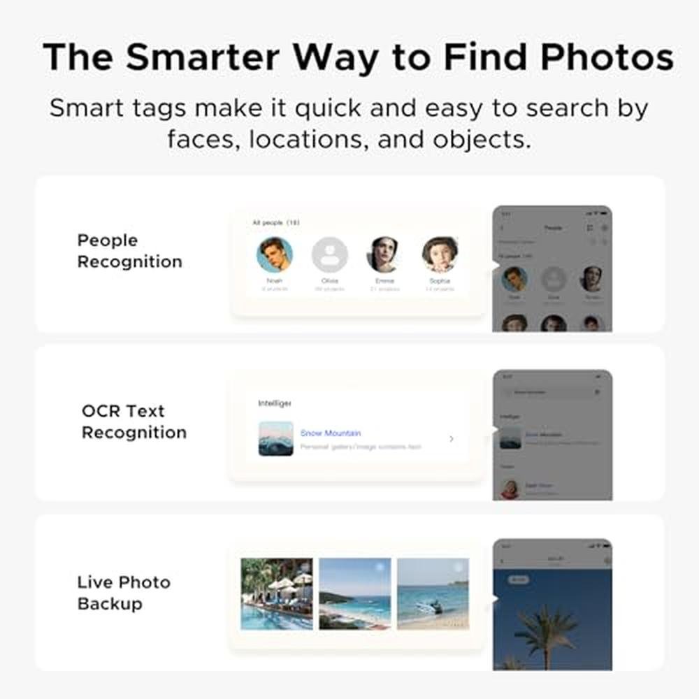 - Let AI Better Organize Your Memories: UGREEN NAS uses AI to tag faces, locations, texts, and objectsso you can effortlessly find any photo by searching for who or what's in it in seconds. It also automatically finds and deletes similar or duplicate photo, backs up live photos and allows you to share them with your friends or family with just one tap. Everything stays effortlessly organized, powered by intelligent tagging and recognition.
