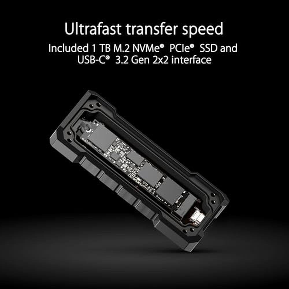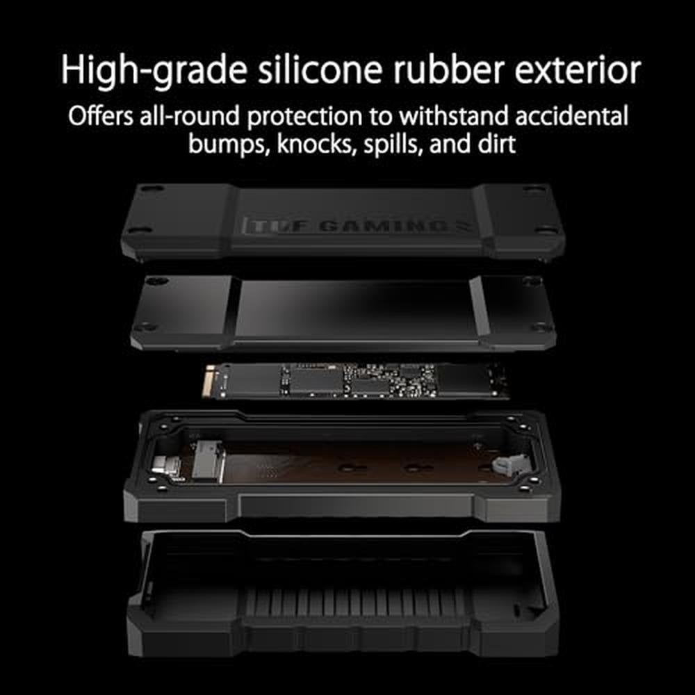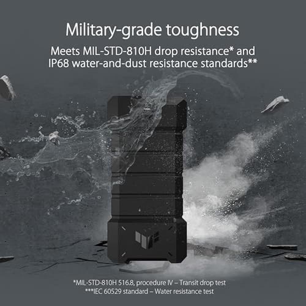 ASUS TUF Gaming AS1000 Plus USB-C 3.2 Gen 2x2 Portable M.2 NVMe PCIe SSD 1 TB, Up to 2000MB/s, MIL-STD-810H Drop Resistance, IP68 Water and dust Resistance, Aluminum Alloy Chassis and a Thermal pad