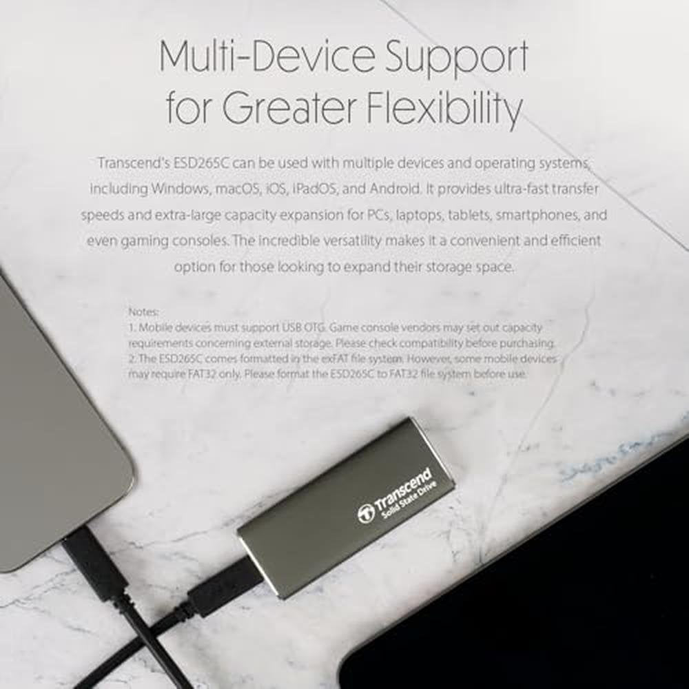 Transcend Portable SSD 2TB External Solid State Drives, up to 1050MB/s USB C SSD External Hard Drive USB 3.2 Gen 2 for iPhone, iPad, Windows, Mac, Android, Tablets, PS5, PS4, Xbox and Smart TV