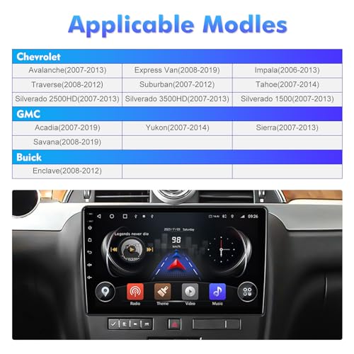 2+32G 10.1-inch Android 12 Car Stereo for Chevrolet/GMC/Buick IPS Touchscreen Screen Car Radio with Carplay & Android Auto Support Backup Camera GPS FM Navi BT SWC