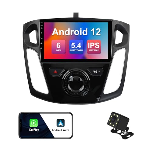 2+32G 9-inch Android 12 Car Stereo for Ford Focus 2012-2018 IPS Touchscreen Screen Car Radio with WiFi 6 Carplay & Android Auto Support Backup Camera GPS FM Navi Bluetooth 5.4 SWC