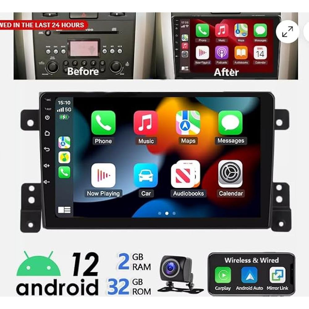 2+32GB Car Stereo Radio for Grand Vitara 2005-2015 Car Stereo Wireless/Wired Carplay Android Auto with 9 IPS Touchscreen GPS Navigation with Bluetooth FM Radio SWC+AHD Rear Camera