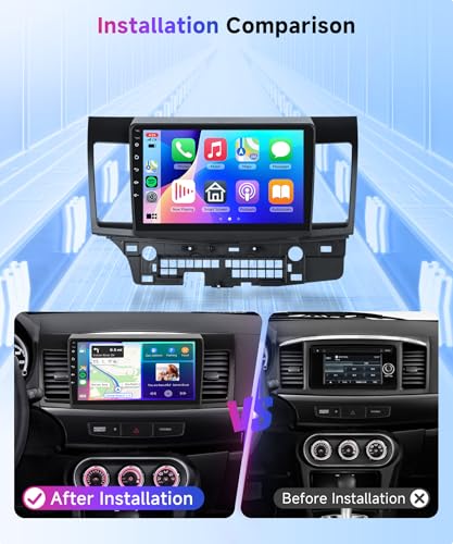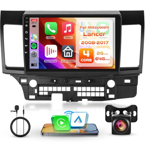 2+64G Android Car Stereo for Mitsubishi Lancer 2008-2017 with Wireless Carplay Android Auto Car Radio, 10.1'' Head Unit Touch Screen with Mirror Link WiFi GPS Bluetooth FM/RDS EQ Backup Camera SWC