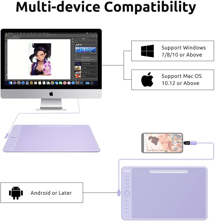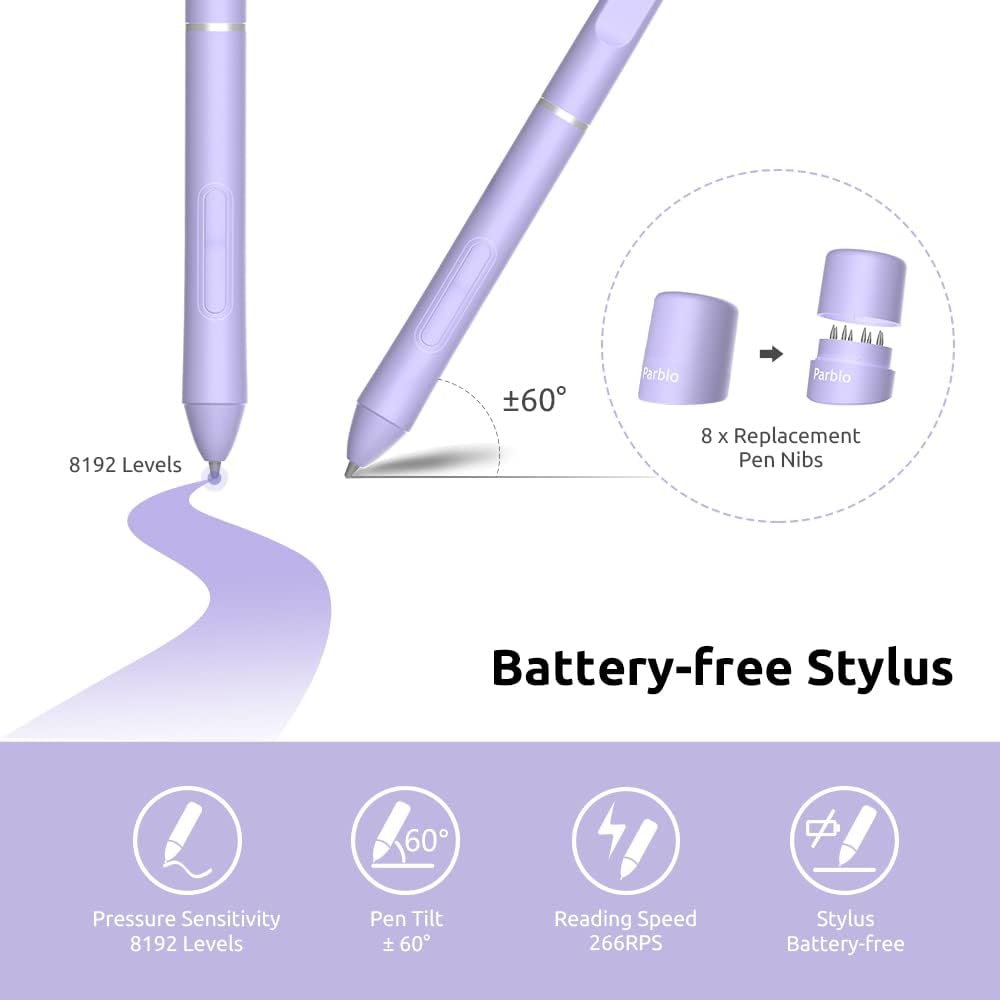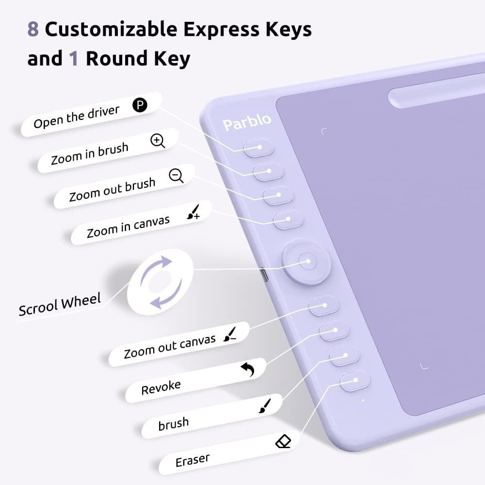 Parblo Intangbo M Drawing Tablet 10x6 inch,Digital Graphic Tablet with 8192 Levels,Battery-Free Stylus and 8 Hot-Keys Drawing Pad,Work with Window/Mac,Android,Purple
