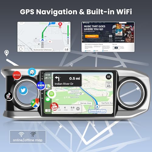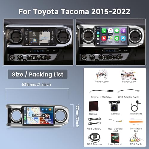 2G 64G Android Car Radio Stereo for Toyota Tacoma 2015-2022 with Wireless Carplay Android Auto, 10.1'' Touchscreen Head Unit with Bluetooth Mirror Link GPS Navigation WiFi FM/RDS EQ Backup Camera SWC
