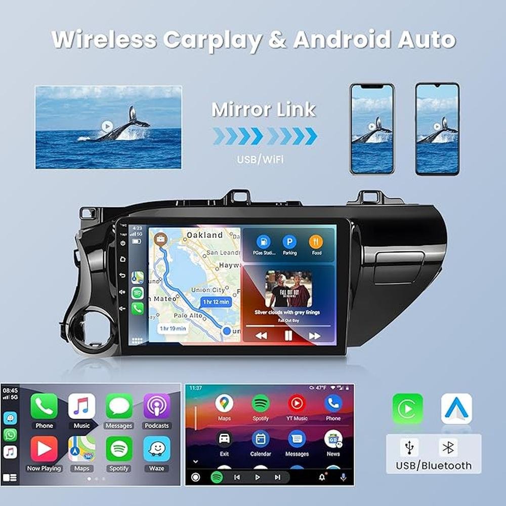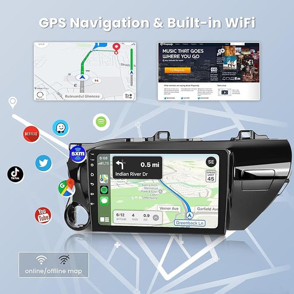 2G 64G Android Car Stereo for Toyota Hilux 2015-2020, Wireless Carplay Android Auto Car Radio, Rimoody 10.1'' Touchscreen Head Unit with Bluetooth Mirror Link GPS WiFi FM/RDS EQ Backup Camera SWC