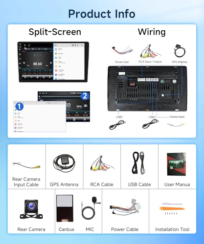 - Includes HD 9 2.5D Tempered Glass Mirror auto radio player, Wireless Carplay, and Wired Android auto