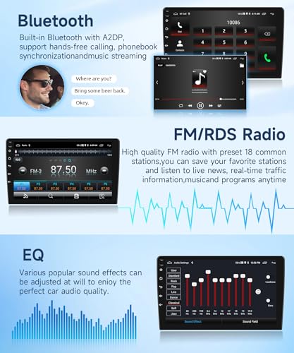 - Android 64G compatible vehicle stereo with 9-inch touchscreen display and wireless connectivity