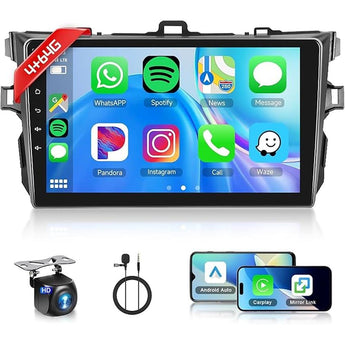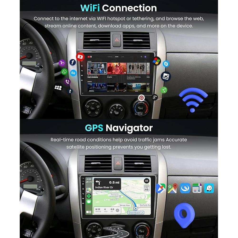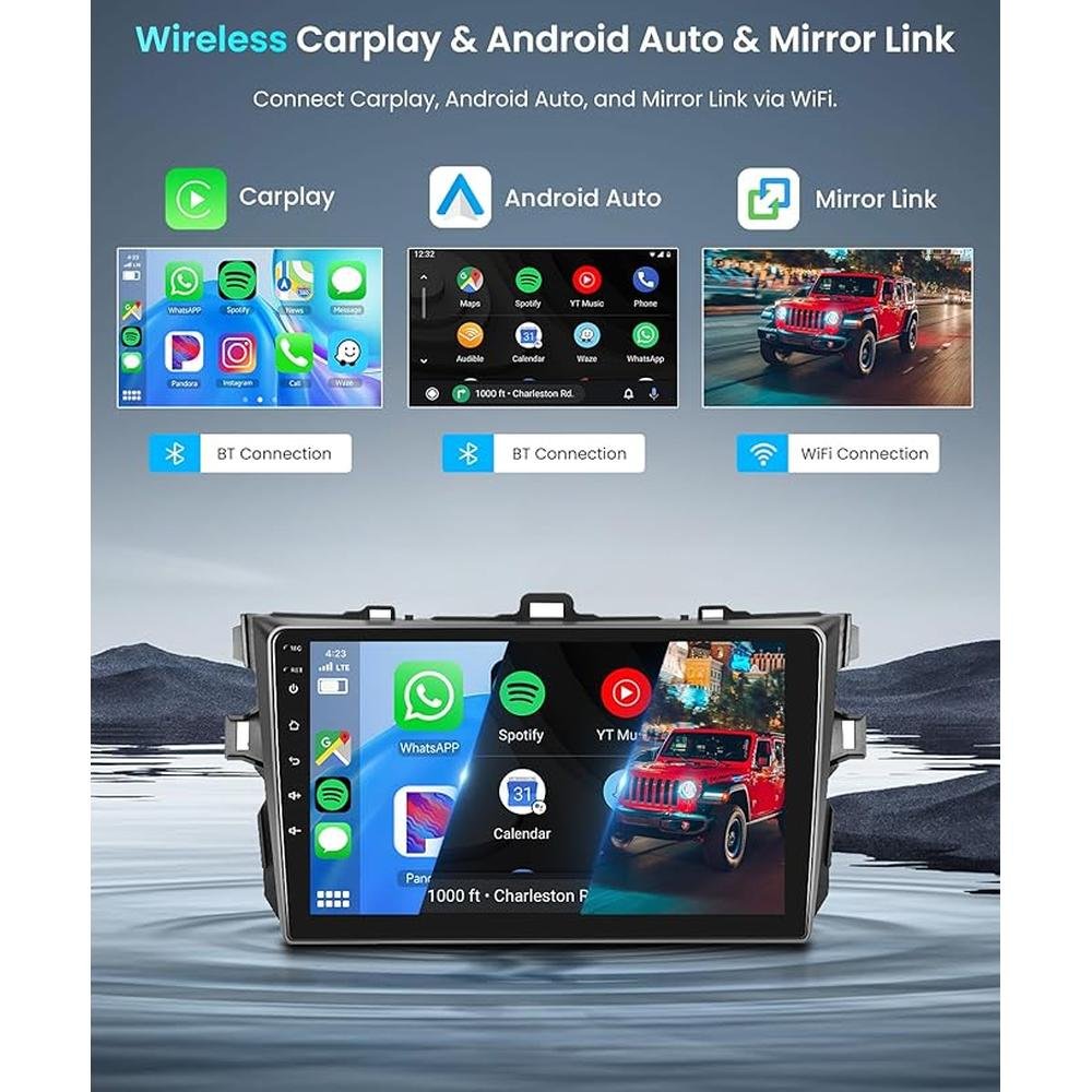 4+64G Android Car Radio Car Stereo for Toyota Corolla 2009-2013 with Wireless Carplay Android Auto, 9'' Head Unit Touch Screen Mirror Link WiFi GPS Navigation Bluetooth FM RDS EQ Backup Camera SWC