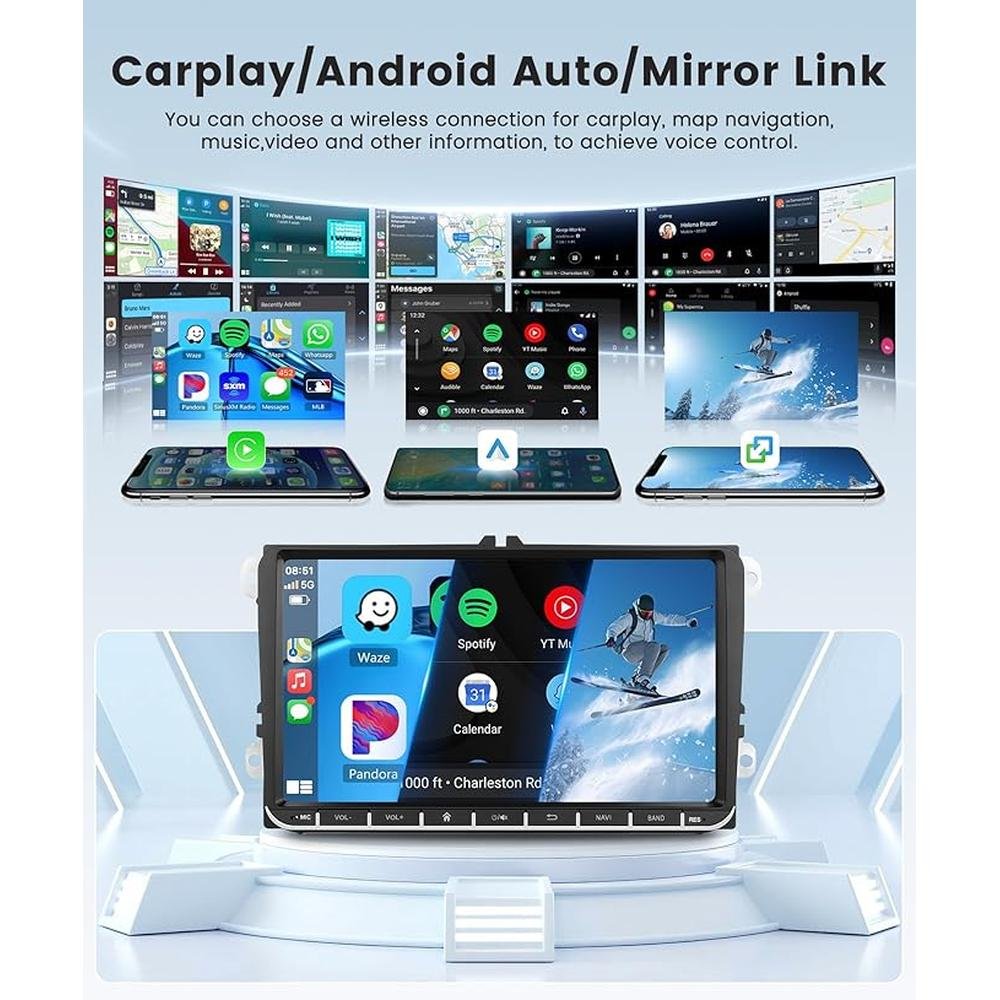 4G+64G Android Car Stereo Radio for VW Passat Jetta Tiguan Golf MK5 MK6 T5 EOS Polo CarPlay, Rimoody 9 Inch Touch Screen Android Auto GPS Navigation Bluetooth FM/RDS EQ-32 SWC Backup Camera