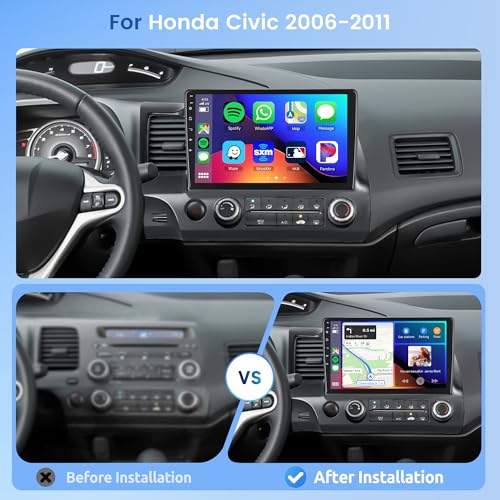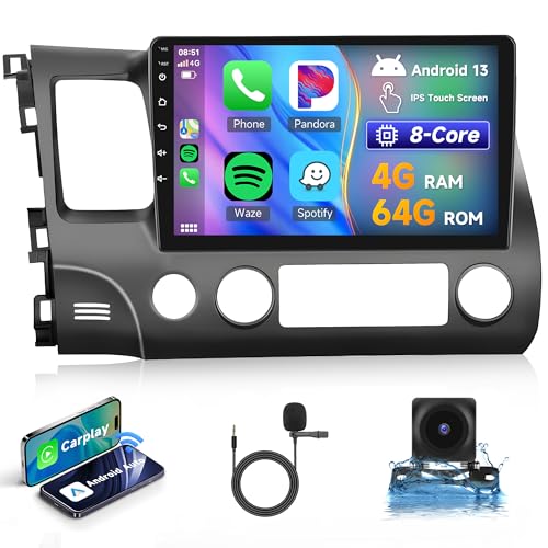 8 Core 4+64G Android Car Stereo for Honda Civic 2006-2011, Wireless Carplay Android Auto Car Radio, 10.1 Touch Screen Head Unit with Bluetooth Mirror Link GPS WiFi FM/RDS DSP AHD Backup Camera SWC