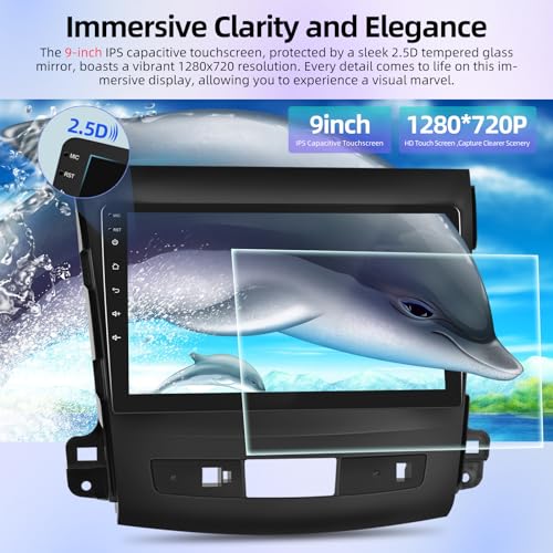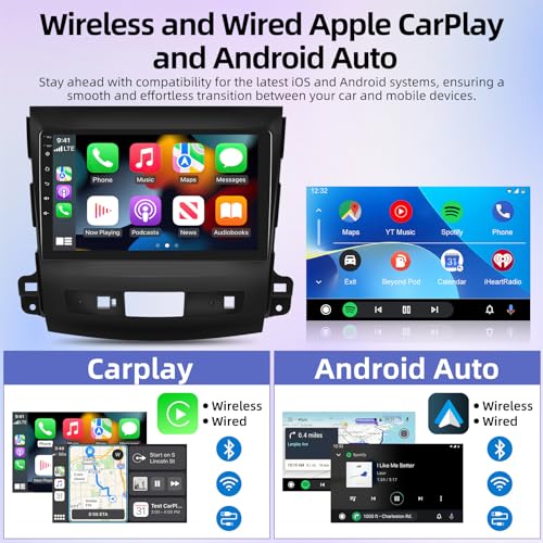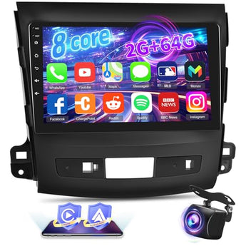 8 Core Android [2+64G] Car Stereo for Mitsubishi Outlander 2008-2015 - 9 inch IPS Touchscreen Radio with Carplay & Android Auto/DSP/GPS/WiFi + AHD Rear View Camera