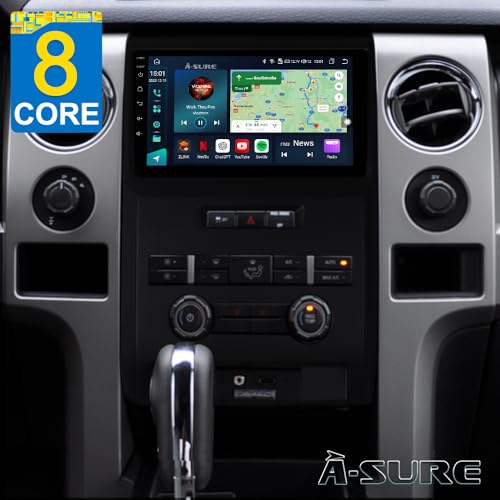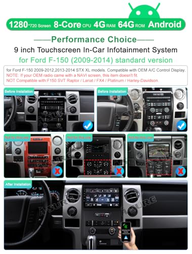 ASURE 8Core 4+64GB Car Stereo Radio for Ford F150 2009-2014 Manual AC with Wireless Carplay Android Auto Upgrade,9 inch Android System Car Dash GPS Navigation Unit,1280x720 Touchscreen