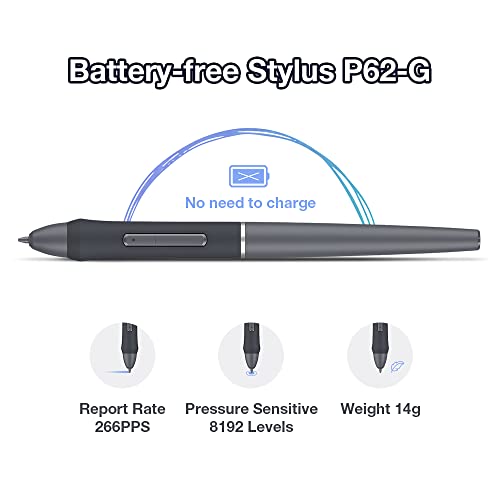 - It comes with a P62-G battery-free pen, providing a precise and expressive drawing experience