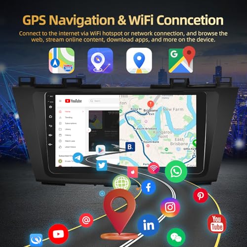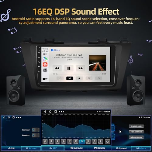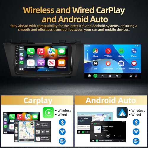 EKAT [2+64G] Android Car Stereo for Mazda 5 2010-2015 - 9 Inch Touch Screen Radio with Wireless Carplay, Android Auto, EQ, WiFi, GPS, SWC + AHD Backup Camera & MIC