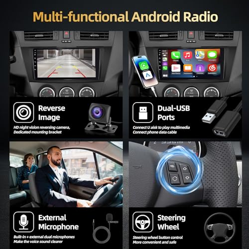 Immerse yourself in the ultimate in-car entertainment experience with the EKAT 2+64G Android Car Stereo, expertly designed for Mazda 5 models from 2010-2015. This premium 9-inch touch screen radio boasts an array of sophisticated features, including wireless Carplay, Android Auto, EQ, WiFi, and GPS, ensuring a seamless and enjoyable driving experience. The package also includes an AHD backup camera and MIC for enhanced safety and convenience. As a premium Android Ekat device, this car stereo offers effortless connectivity and compatibility with a wide range of devices. With its user-friendly interface and extensive features, it's no wonder that the EKAT Android Car Stereo has received rave reviews, making it a top choice among car enthusiasts. This high-performance stereo comes with Android 13, 2G RAM, and 64G ROM, allowing for smooth operation and ample storage for your favorite apps.