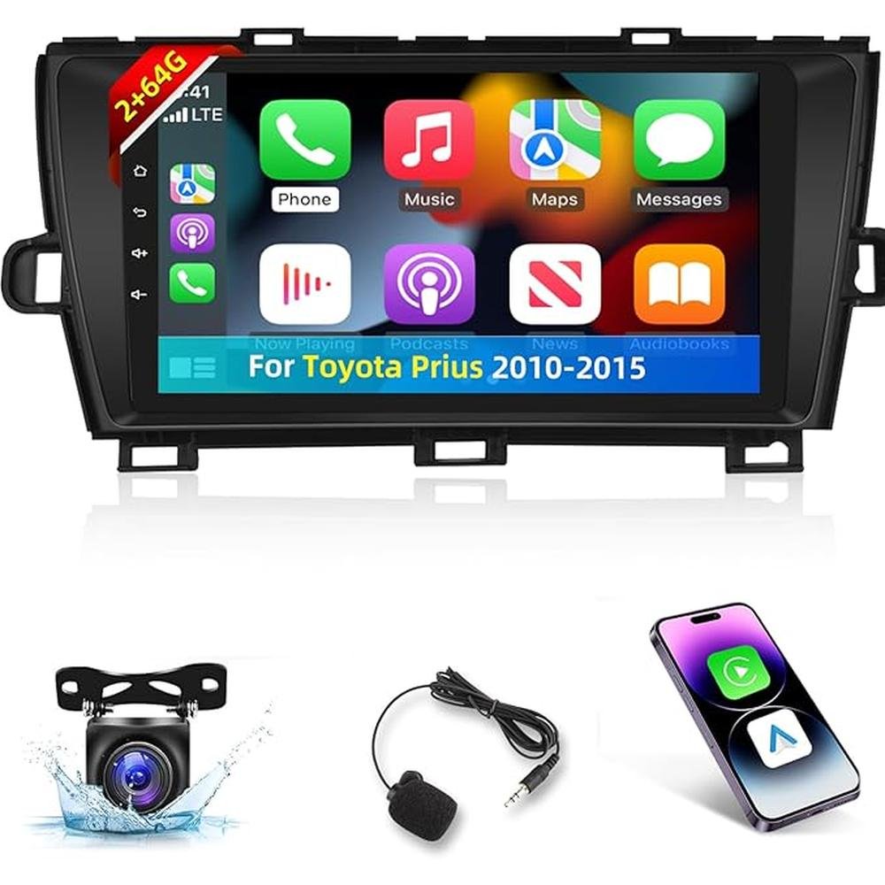 EKAT Car Stereo for Toyota Prius 2010-2015 - 9 Inch 2+64G Android Touchscreen Radio with Wireless Carplay and Android Auto, HiFi/WiFi/GPS/SWC + AHD Backup Camera