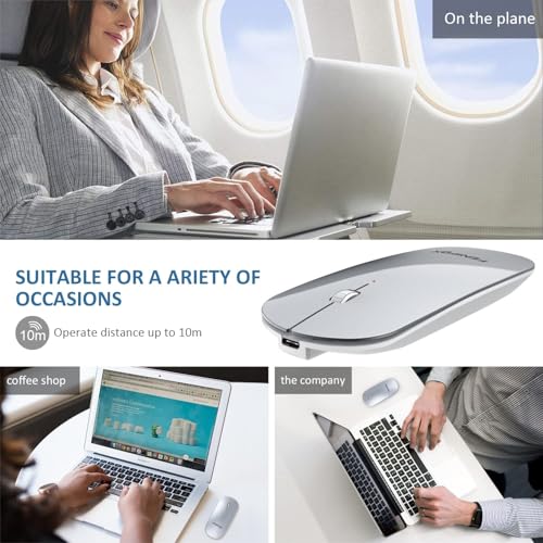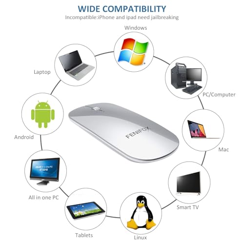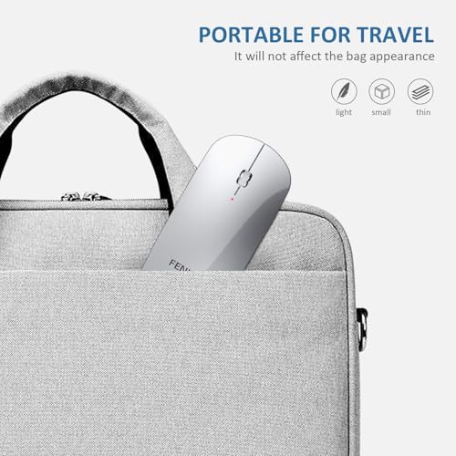 Mouse FENIFOX | FENIFOX Bluetooth Mouse Slim Mini Portable Flat Travel Wireless Mouse Rechargeable Quiet Ultra Thin Mice Compatible with Laptop Tablet Notebook PC Silver and White | Premium High-End Electronics