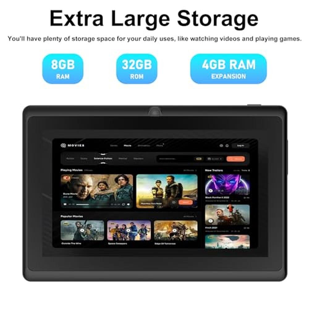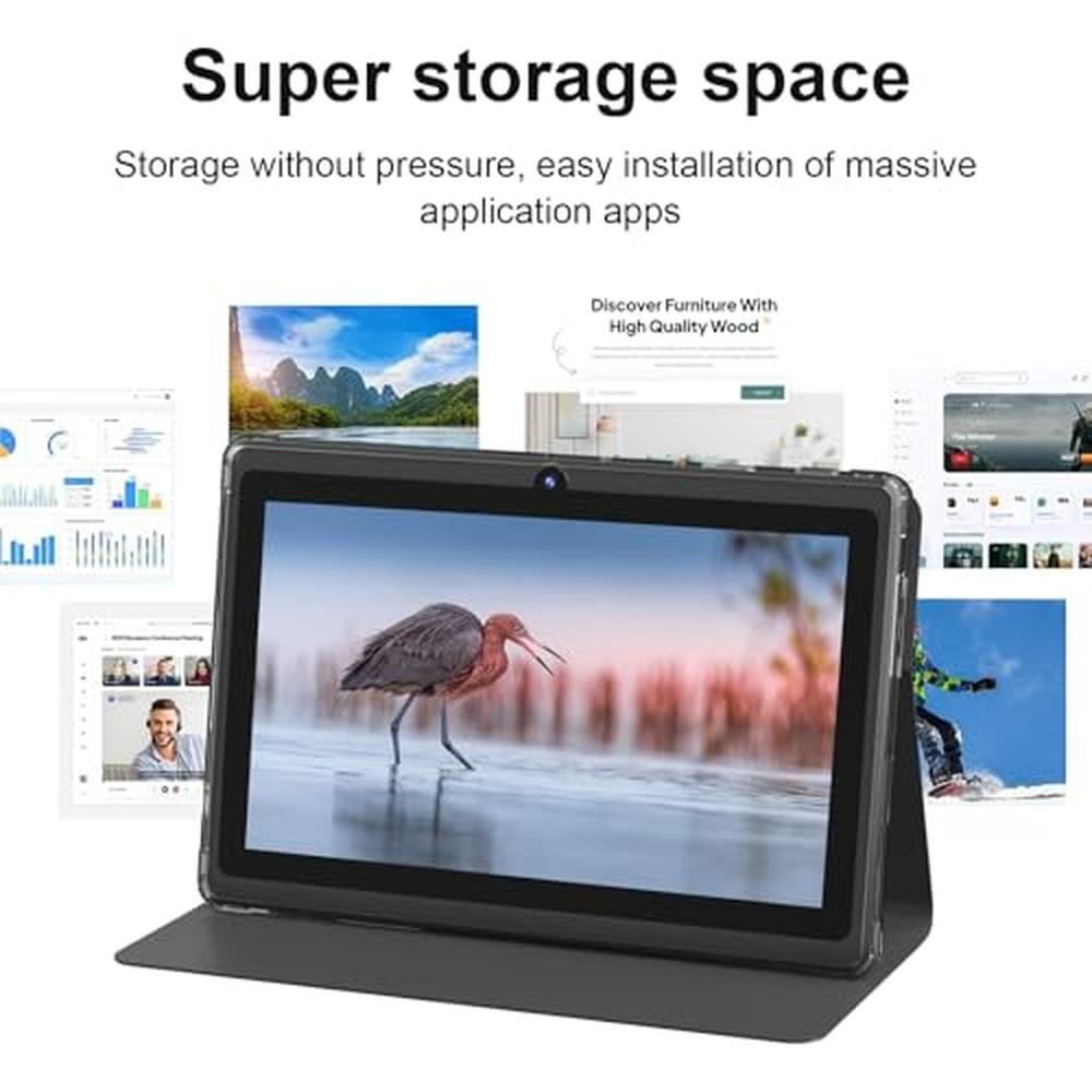- 7 Inch IPS Display- Equipped with a 7-inch touch screen with 1024*600 resolution, this tablet can display photos clearly and watch videos smoothly, which is enough to cope with daily needs.