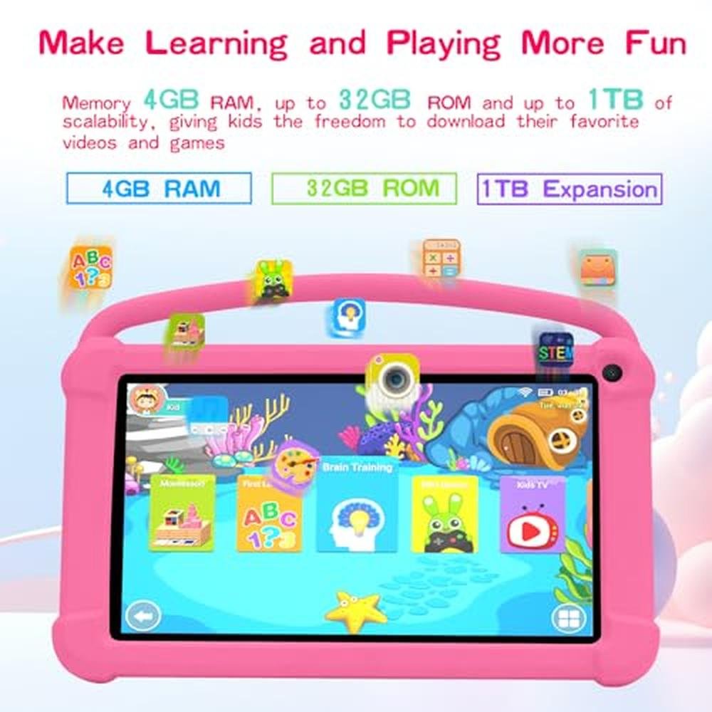 Kids Tablet 7 inch for Boys Girls, Android Tablets for Kids 4GB RAM 32GB ROM Toddler Tablet WIFI Bluetooth Safety Eye IPS Screen Parental Control, Dual Camera Shockproof Case for Educational, Games.