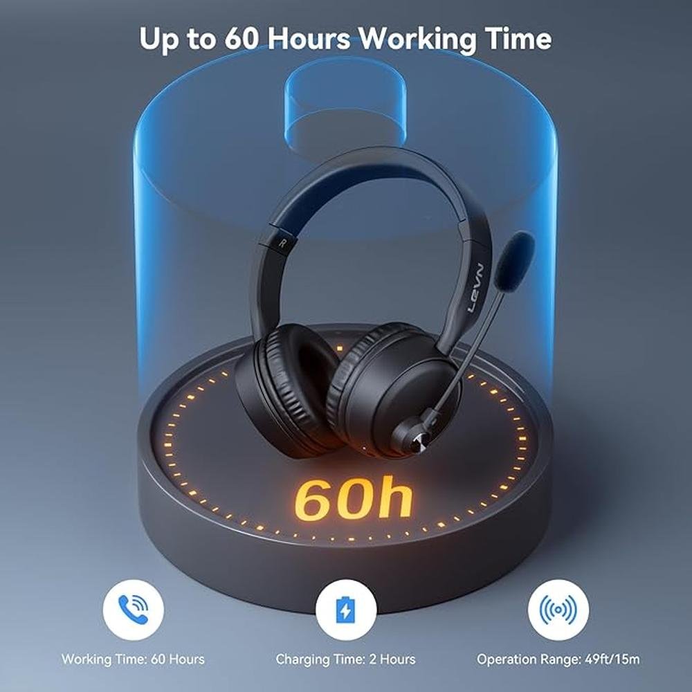 LEVN Bluetooth Headset with Microphone, Wireless Headset with Mic & Mute Button, 60 Hrs Working Time, Noise Cancelling Bluetooth Headphomes 5.3 Multipoint Connect to Cell Phone/Mobile/Laptop/Tablet/PC