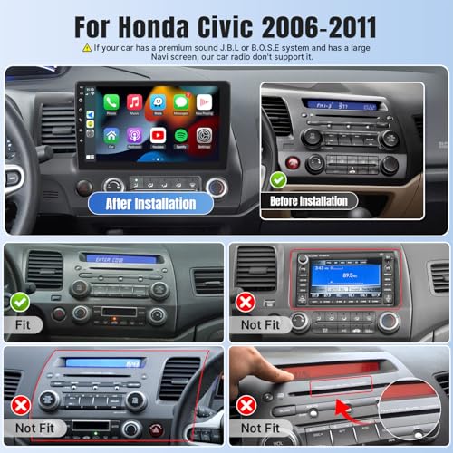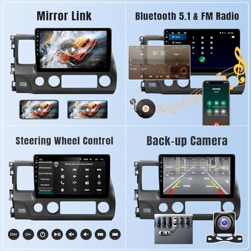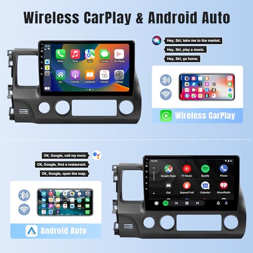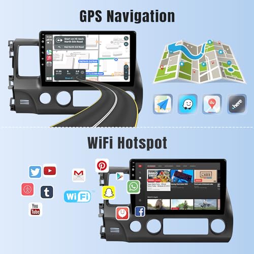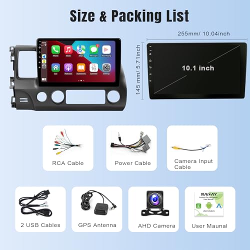 Naifay Android Car Stereo for Honda Civic 2006 2007 2008 2009 2010 2011 with Wireless Carplay Android Auto, 2G+32G 10.1" HD Touchscreen Car Radio WiFi GPS Navigation Bluetooth MirrorLink Backup Camera