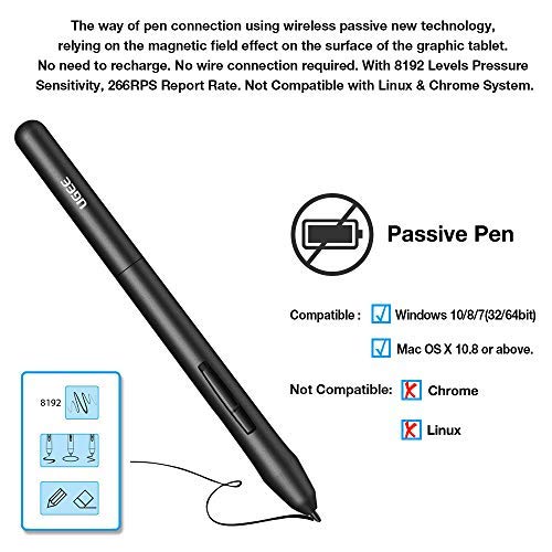 Stylus | UGEE Graphics Drawing Tablet Pen | 8192 Levels of Pressure Sensitivity Battery-Free