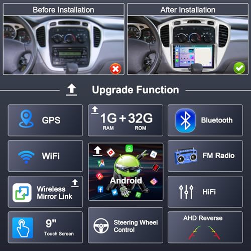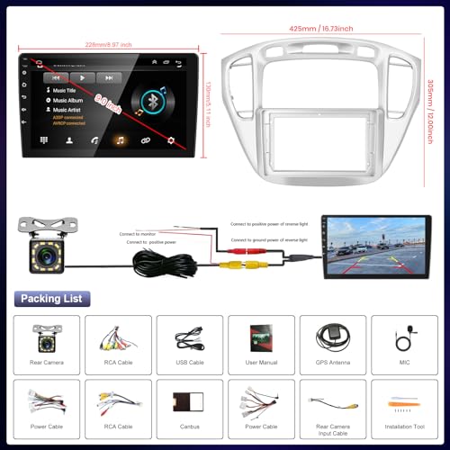 Experience the ultimate in-car entertainment with the Rimoody Car Radio, specifically designed for Toyota Highlander models from 2000 to 2007. This Android 13 car stereo boasts a stunning 9-inch touchscreen display, GPS navigation, WiFi connectivity, Bluetooth functionality, and FM radio. Enjoy seamless mirror linking and crystal-clear audio, while the included backup camera enhances safety and convenience. As a leading brand in the automotive electronics industry, Rimoody car stereos are known for their exceptional performance and user-friendly interface. Whether you're looking for a reliable car stereo or seeking guidance on installation, our product is designed to meet your needs. With its HD 9 2.5D Tempered Glass Mirror auto radio mp5 player, upgraded dual system mirror link for IOS and Android, built-in GPS navigation support, built-in WIFI support, rear view camera support, and steering wheel control, you can control the functions you need by steering wheel, making it more convenient. The built-in Bluetooth with A2DP, hands-free, phone book, Bluetooth hands-free calls, and Bluetooth music player, along with the double USB adapter input, FM radio, and online music, allow you to transfer music to the car stereo by FM and enjoy the original car stereo sound, with 18 preset stations.