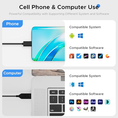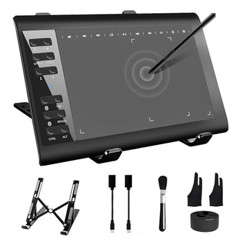 Experience the pinnacle of creative expression with the TeinenRon Graphics Drawing Tablet, meticulously designed for professionals and artists seeking unparalleled precision and control. This premium drawing tablet boasts a expansive 10x6 inch drawing area, allowing for intricate details and broad strokes, coupled with 8192 levels of pen pressure sensitivity that captures every nuance of your artistic vision. The inclusion of 12 customizable hot keys streamlines your workflow, enhancing productivity and efficiency. Compatible with a wide range of devices, including PC, Mac, and Android, this versatile tablet seamlessly integrates into your existing creative ecosystem, whether you're engaged in painting, design, online teaching, or other artistic pursuits. The sleek design and included stand provide a comfortable drawing experience, reducing fatigue and allowing you to focus on your craft. As a superior choice for both professionals and enthusiasts, the TeinenRon Graphics Drawing Tablet offers an exceptional blend of quality, functionality, and value, making it an indispensable tool for anyone looking to elevate their creative endeavors.