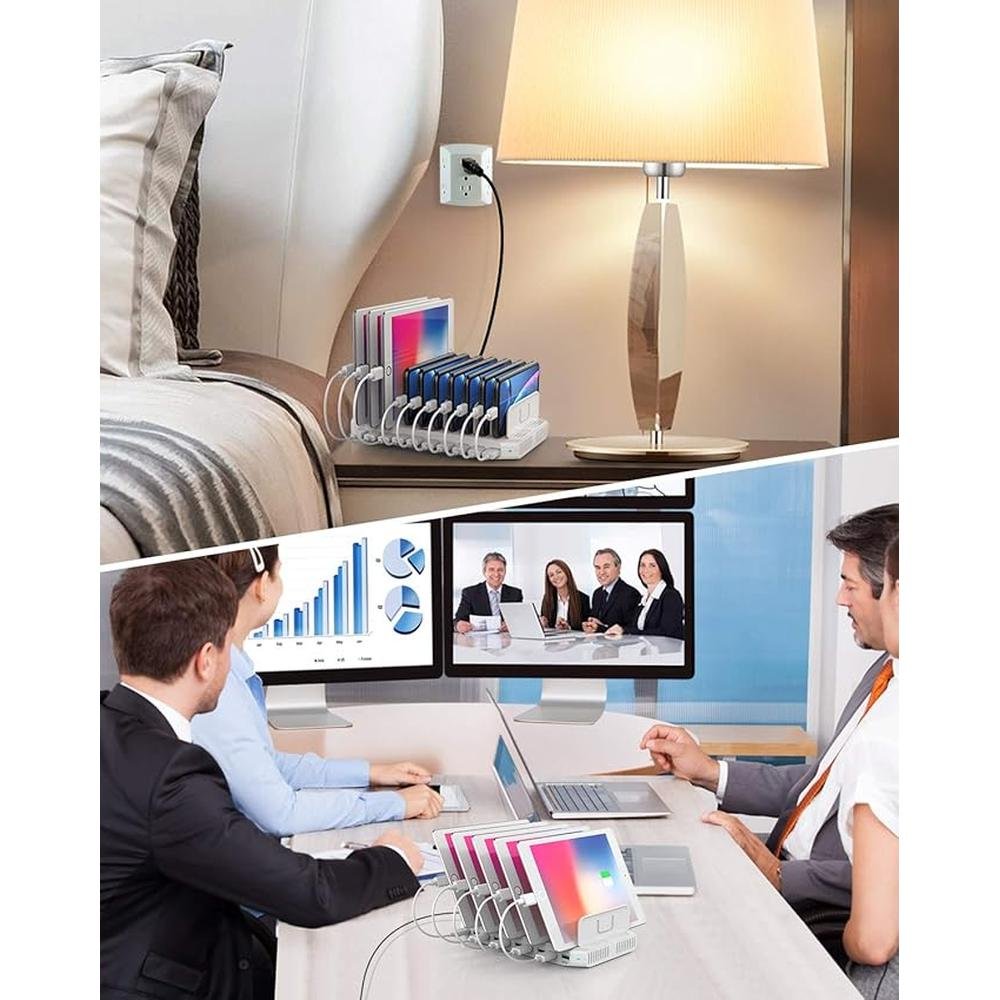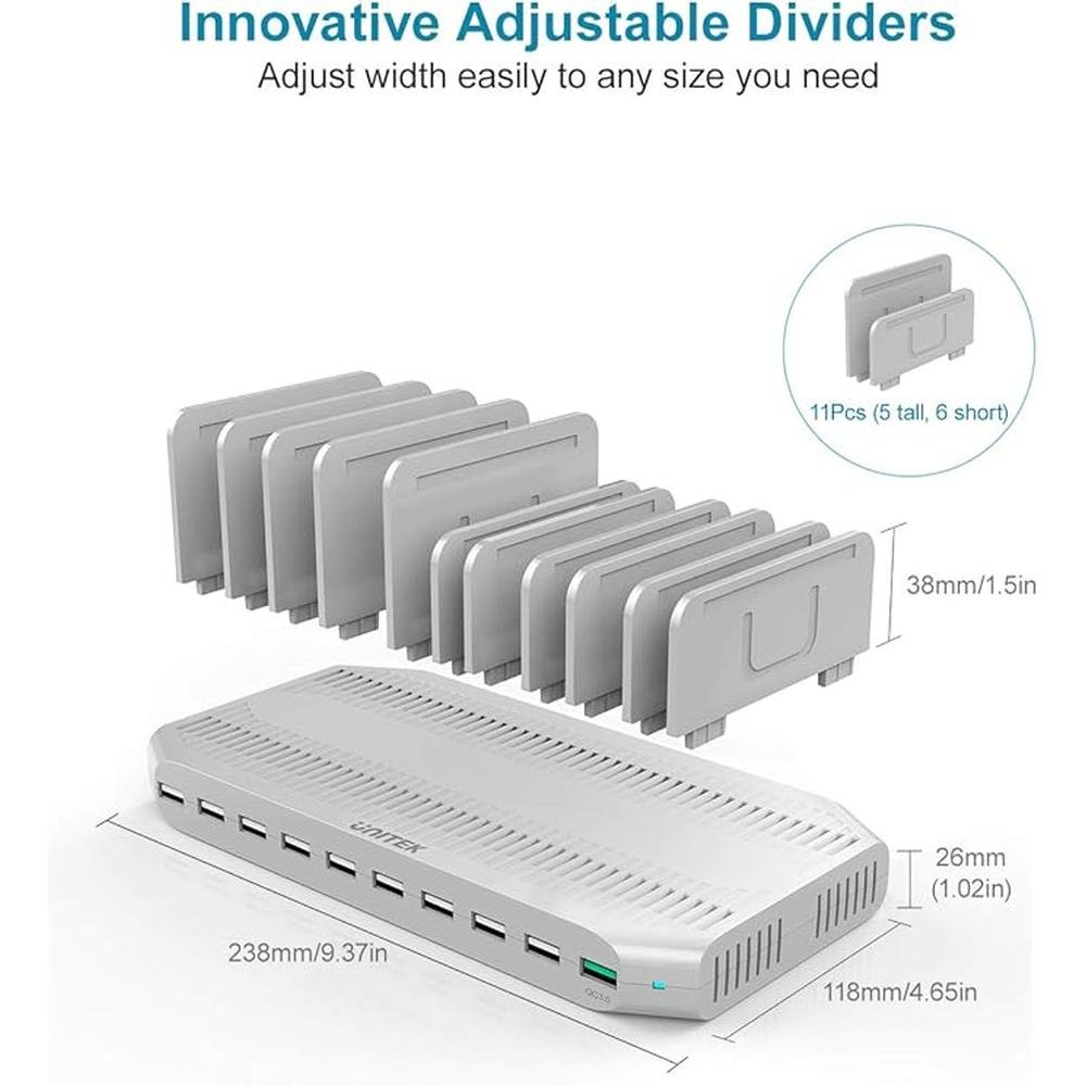 Unitek Charging Station for Multiple Devices, USB Charging Dock with Adjustable Dividers, QC 3.0 and SmartIC, iPhone, iPad, Tablet Organizer Stand-(UL Certified)