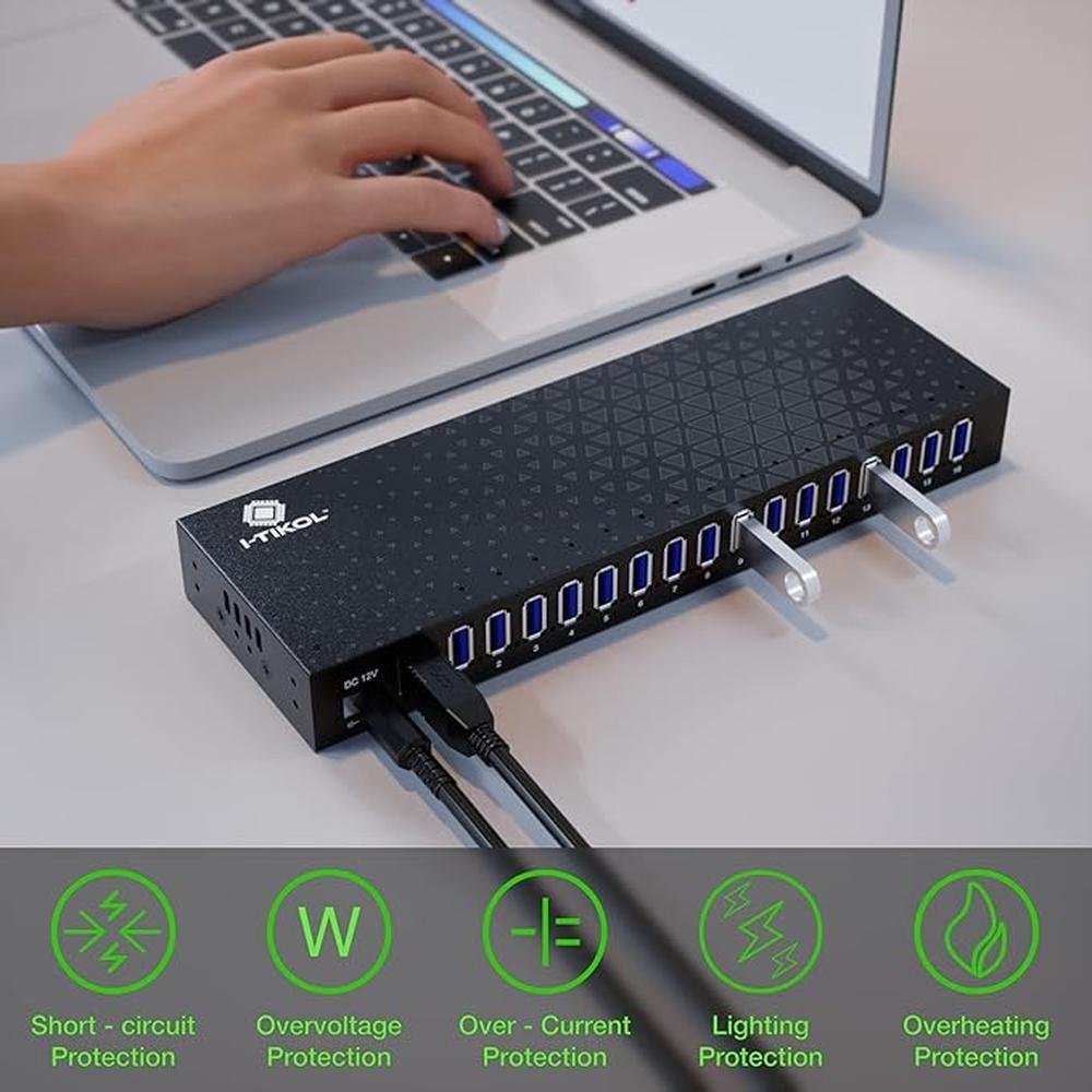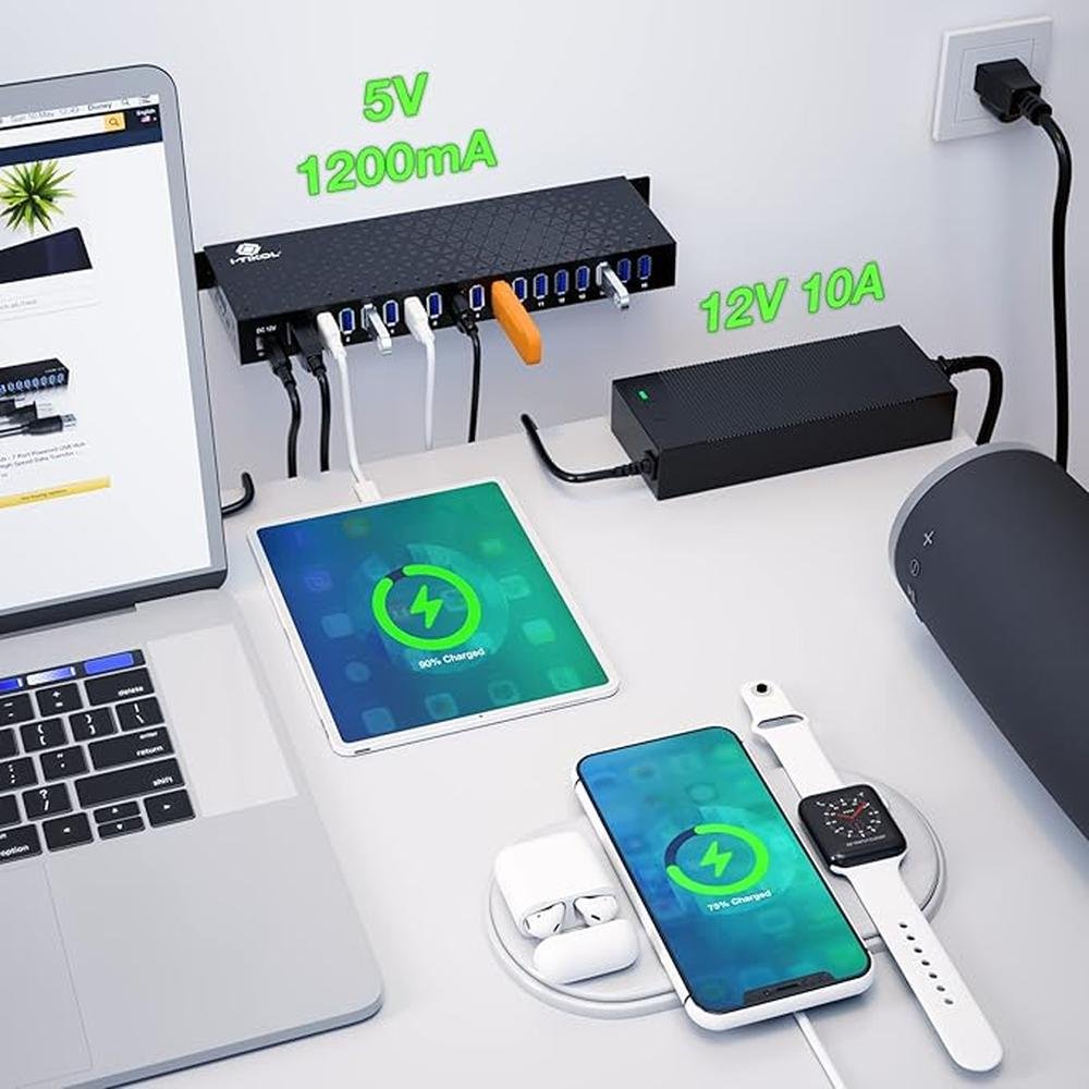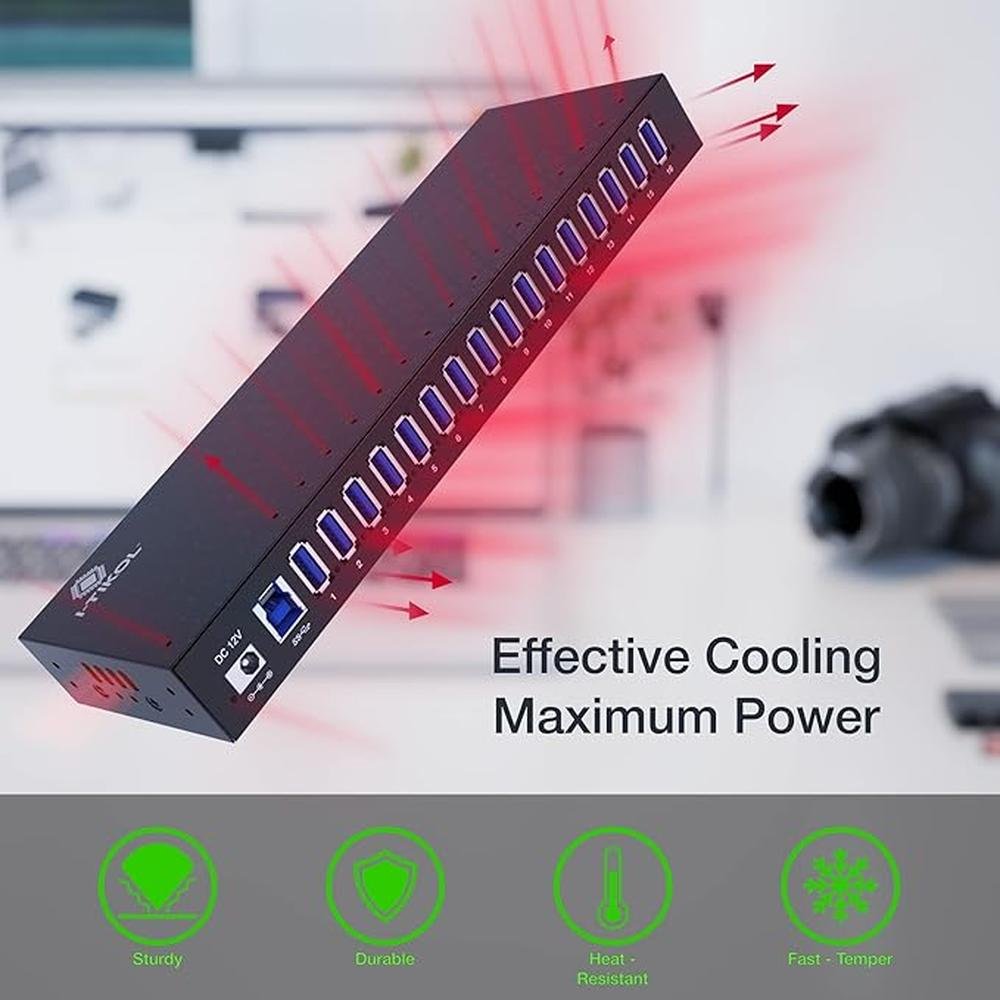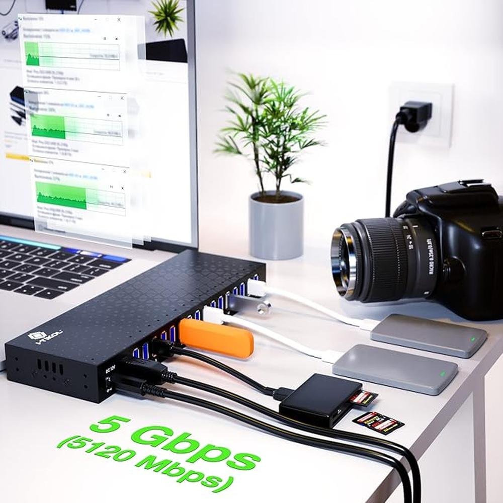 - Our 16-port powered USB hub is designed to provide high-speed data transfer rates of up to 5Gbps, making it ideal for multiple device connections.
