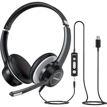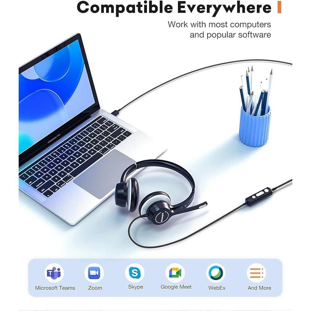 USB Headset with Microphone, 3.5mm Wired Computer Headsets with Noise Cancelling Microphone, Stereo Headphones with MIC for PC, in Line Controls, Work Headset for Skype Zoom Tablet Laptop