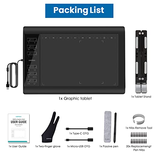 Unlock your full creative potential with the XOPPOX Graphics Drawing Tablet, expertly designed to elevate your artistic expression and streamline your workflow. This premium 10 x 6 inch large active area tablet boasts an impressive 8192 levels of pen pressure sensitivity, allowing for precise and nuanced strokes that bring your ideas to life. The battery-free pen ensures uninterrupted drawing sessions, while the 12 customizable hot keys enhance your productivity and efficiency. Compatible with PC, Mac, and Android operating systems, this versatile tablet is perfect for professional artists, educators, and designers seeking a top-tier tool for painting, design, and online teaching. With its sleek black design and user-friendly interface, this tablet is sure to become your go-to creative companion. For those seeking a high-end graphics tablet that delivers exceptional performance and value, the XOPPOX Graphics Drawing Tablet is the ultimate choice.