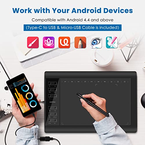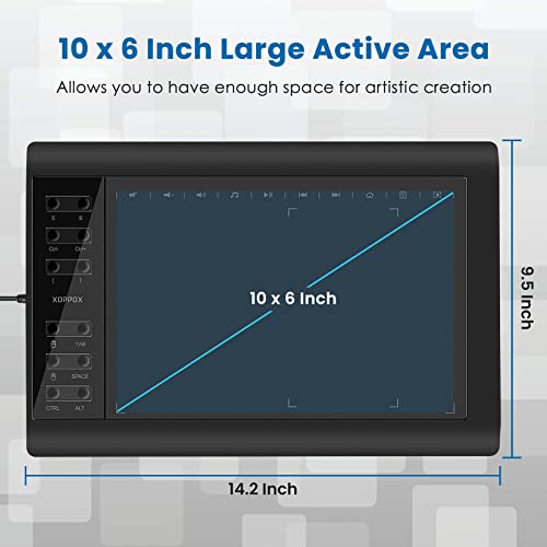 XOPPOX Graphics Drawing Tablet | 10x6 Inch Large Active Area | 8192 Levels Battery-Free Pen & 12 Hot Keys