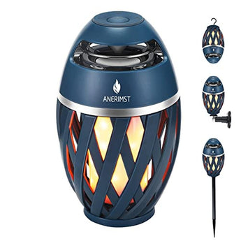 Bluetooth 5.0With the latest Bluetooth 5.0 technology, the waterproof Bluetooth speaker ensures instant pairing and maintains a strong connection up to 33-100 ft, with your Bluetooth-enabled devices for music.High-quality soundUse high-quality Bluetooth speakers, which provide rich bass without distortion, even at the highest volume. Best gift for all people. The wireless Bluetooth speaker delivers stunning sound with enhanced bass, tight mids, and crystal-clear highs without distortion at any volume.Long playtime & Fast chargingPlaytime varies according to volume level and audio content. E.g: you can enjoy 12-24 hours of music at 50% volume, and 6-10 hours of keep playing at maximum volume. Using the ANERIMST USB cable only takes 4-5 hours to charge fully.Multi-function DesignUnique 4-in-1 design, outdoor Bluetooth speaker, patio torch light, LED camping lantern, and ambient lighting, it is a very perfect gift for men women, dads, moms, lovers, fathers, mothers, and families.Ultra-portable & Ultra-lightweightUltra portability makes it can be effortlessly put in your bag and carried everywhere outside. It is perfect for outdoors, grilling, gardening, camping, hiking, tourism, dorm room, kitchen, office, and more.Impressive gift for adults and kidsIdeal gift for men, women, baby, kids, teen boys or girls, and adults on Valentine's day, Christmas day, Father's day, Mother's day, Birthday, New Year, etc.Package: 1x ANERIMST Speaker1x Metal Hook1x Ground Stake1x Wall Mount1x User Manual