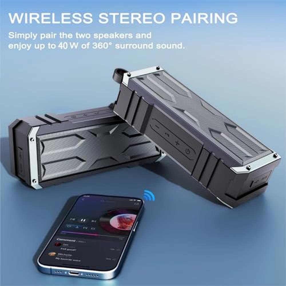 - Rich Punch Bass & Wireless Stereo Outdoor Speakers: This Bluetooth speaker features Multi-Channel Subwoofer Enhancement Technology. With 20-watt stereo audio driver and two spacious woofers for even more listening enjoyment. The speakers bluetooth wireless supports TWS so you can purchase two speakers at the same time, to get a full theater-quality stereo experience with separate channels.
