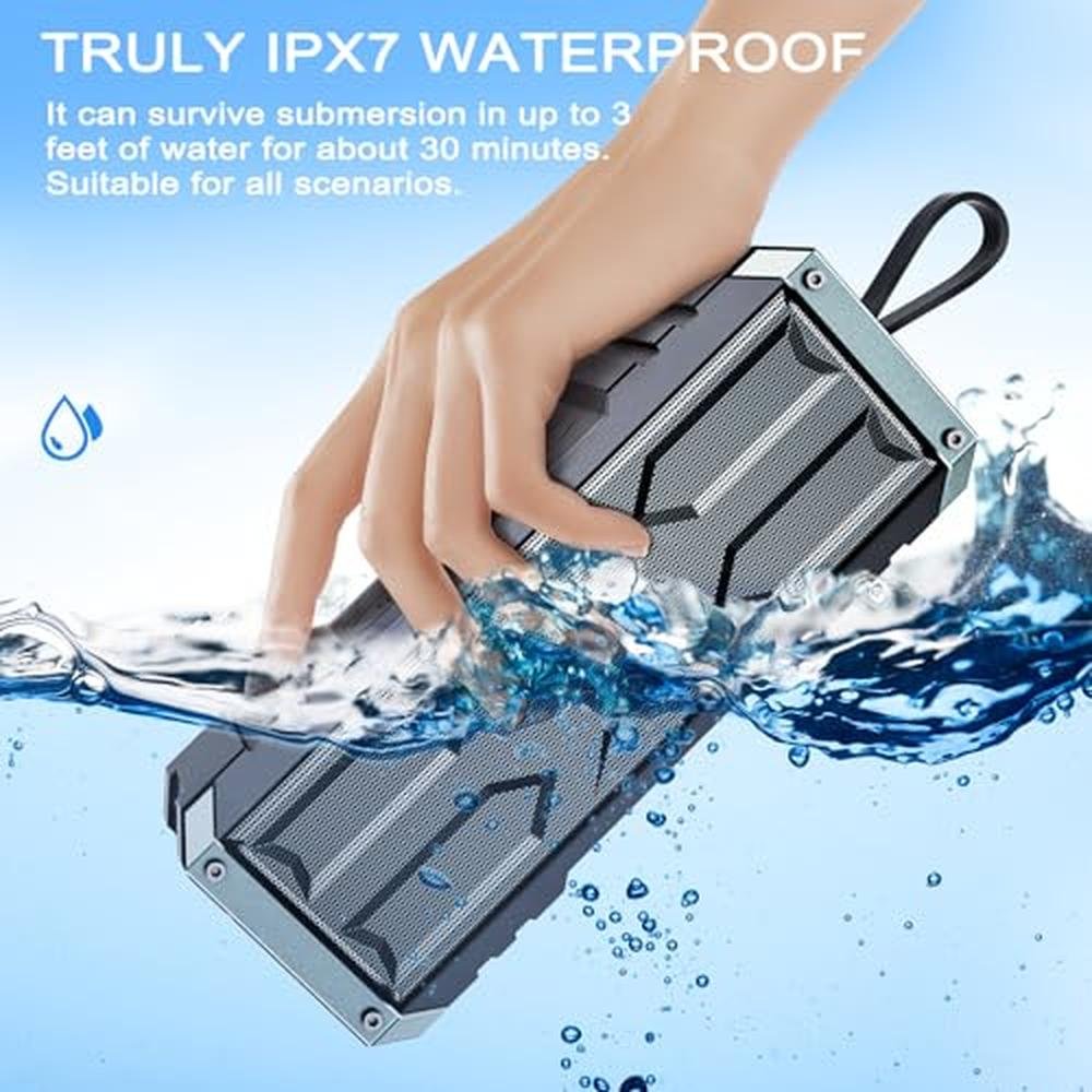 - True Waterproof Speaker: C28N wireless speakers with Bluetooth is made with rugged metal body and IPX7 waterproof material, listen with No Worries. This waterproof bluetooth speaker is ideal for outdoor adventures and perfect for outdoor activities such as camping, hiking, parties, pools, beaches, cars, boats, golf carts, RVs or bicycles.
