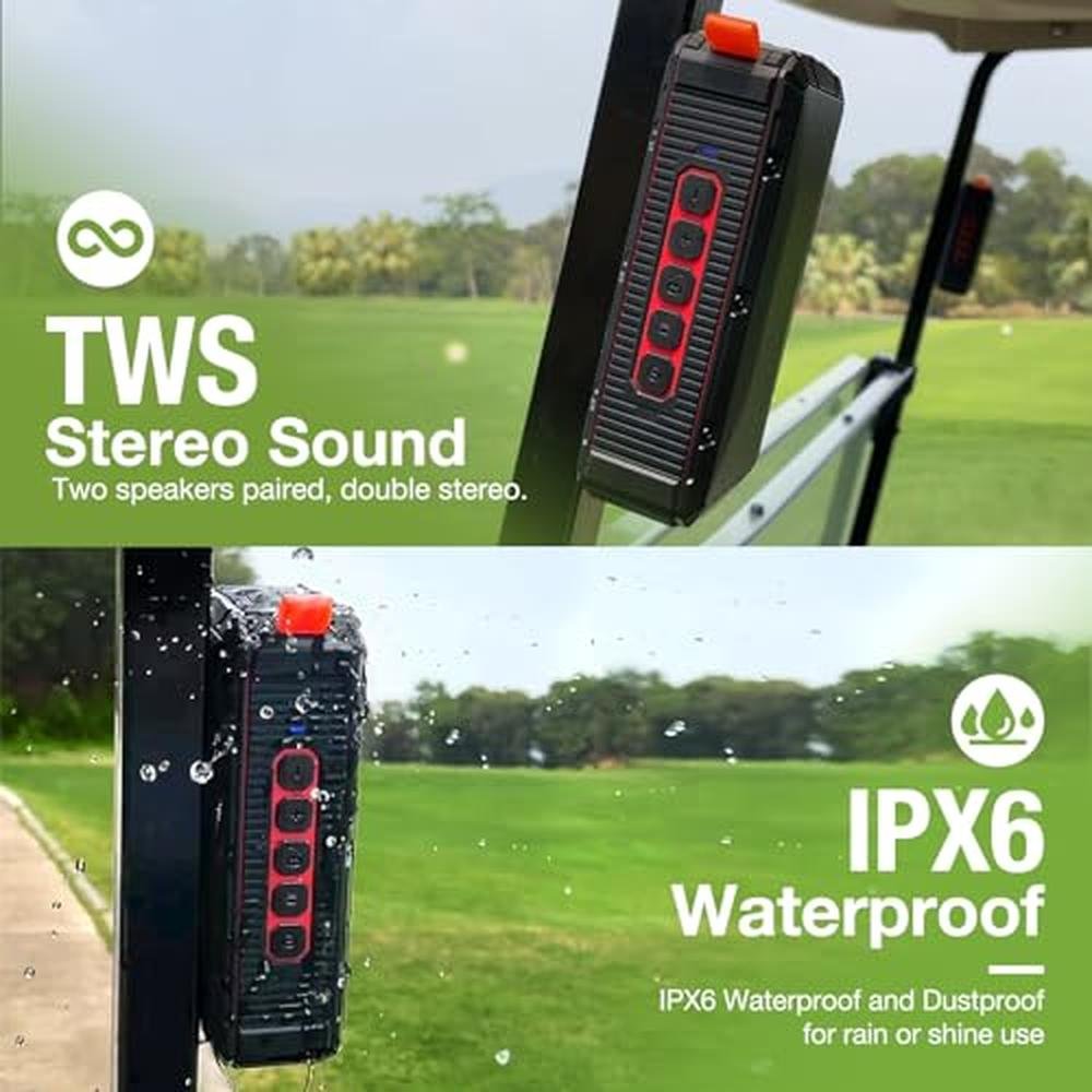• Real Stereo: Through the TWS function Dprofy wireless Bluetooth golf cart speakers can double up via Stereo Sync. Each magnetic Bluetooth golf cart speaker has two built-in 8W stereo waterproof Bluetooth speakers, spread L/R channels for expansive true stereo, boosting amplitude, and audio immersion!