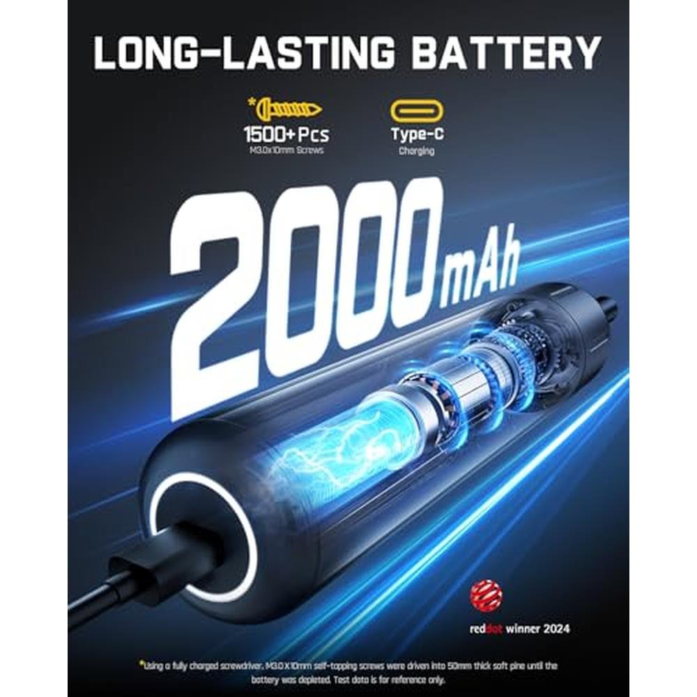 | Included Components | 1 x Aluminum Alloy Magnetic Case, 1 x Cordless Electric Screwdriver, 1 x USB-C Cable, 16 pcs 1/4''Hex Screwdriver Bits, User Manual |